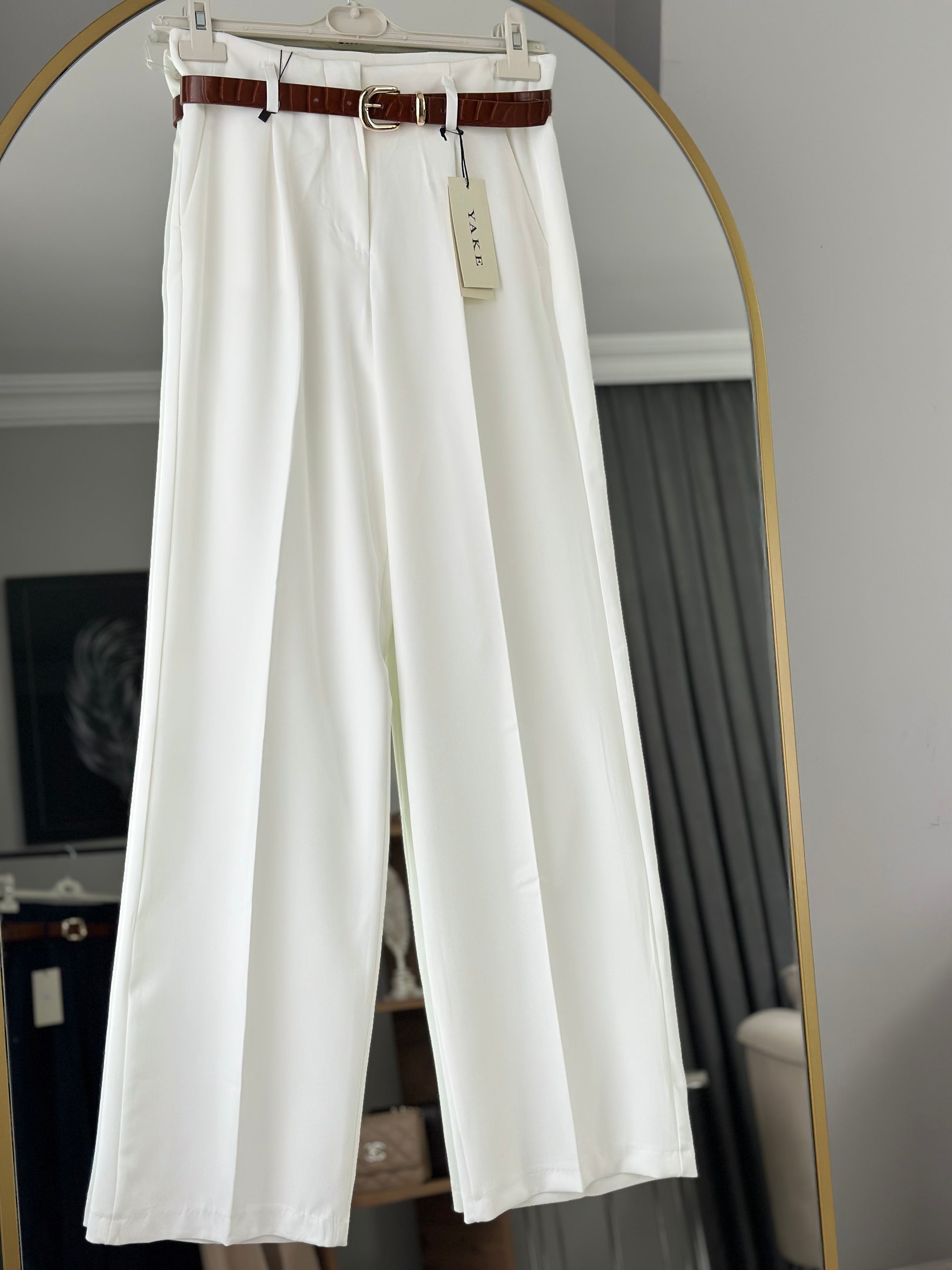 YAKE PALAZZO PANTOLON- BEYAZ